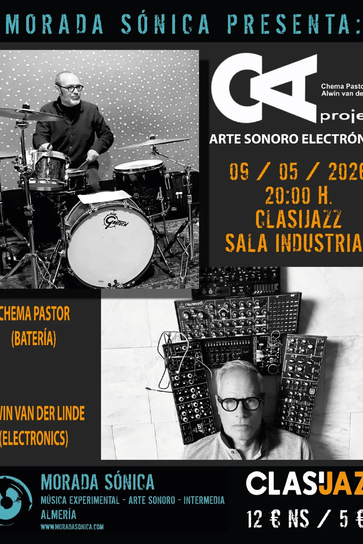 Sala Industrial | 12€ NS / 5€ S El dúo CA, formado por Chema Pastor (percusión) y Alwin van der Linde (electrónica), se sitúa en la improvisación libre dentro de la escena experimental madrileña. Ambos exploran el sonido como materia viva mediante la escucha y la creación en tiempo real, con influencias que van del jazz a la vanguardia. La batería se transforma en una fuente de texturas y microsonidos, alejándose de su función tradicional, mientras que la electrónica amplía y reconfigura el sonido en directo. Juntos crean un espacio donde lo acústico y lo electrónico se fusionan en constante cambio. Cada actuación es única, sin estructuras fijas: la música surge del diálogo, los silencios y la interacción. El resultado es una experiencia abierta y efímera, donde el público forma parte de un proceso creativo irrepetible.