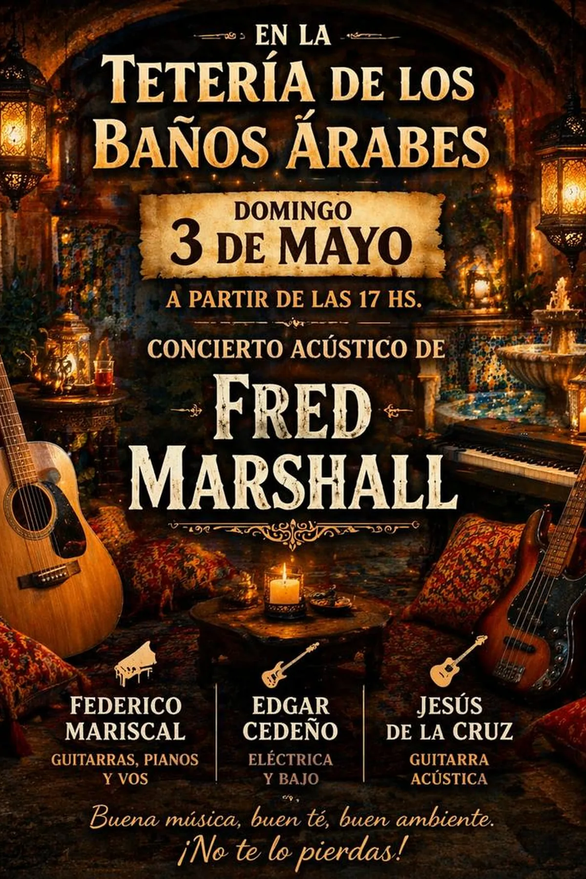 Disfruta de un concierto acústico de Fred Marshall acompañado por Federico Mariscal en guitarras, pianos y voz, Edgar Cedeño en eléctrica y bajo, y Jesús de la Cruz en guitarra acústica. Buena música, buen té, buen ambiente. ¡No te lo pierdas!