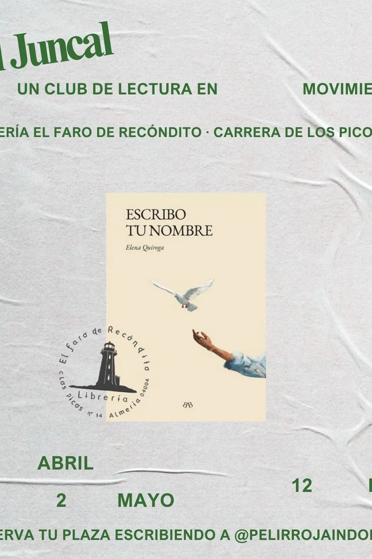 Únete al club de lectura en la Librería El Faro de Recóndito, donde discutiremos ‘Escribo tu nombre’ de Elena Quiroga. Reserva tu plaza escribiendo a @pelirrojaindomita.