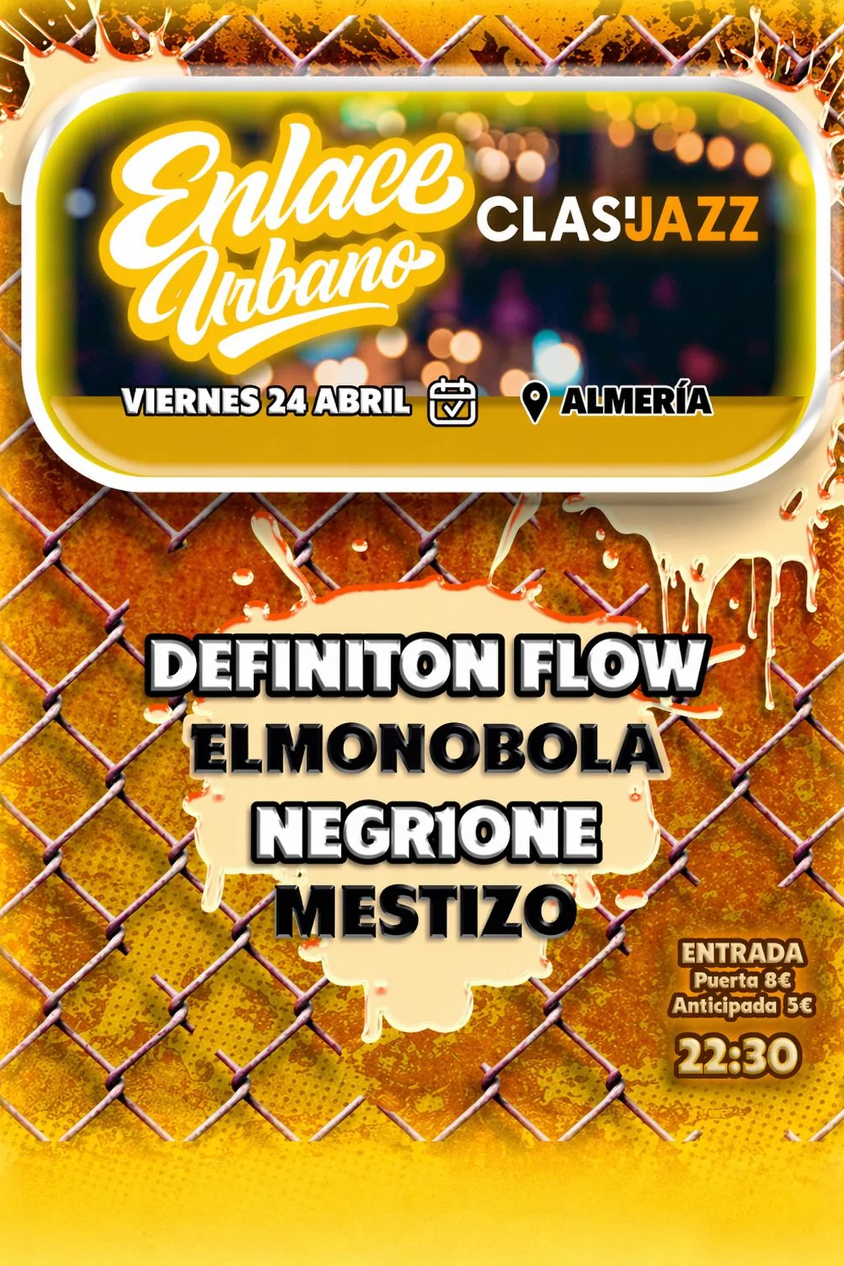 8€ NS / 3€ S | Sala Principal Enlace urbano Almería viene con una propuesta de rap para motivar a los jóvenes a escuchar las letras y acercar la cultura underground a la escena a golpe de concierto