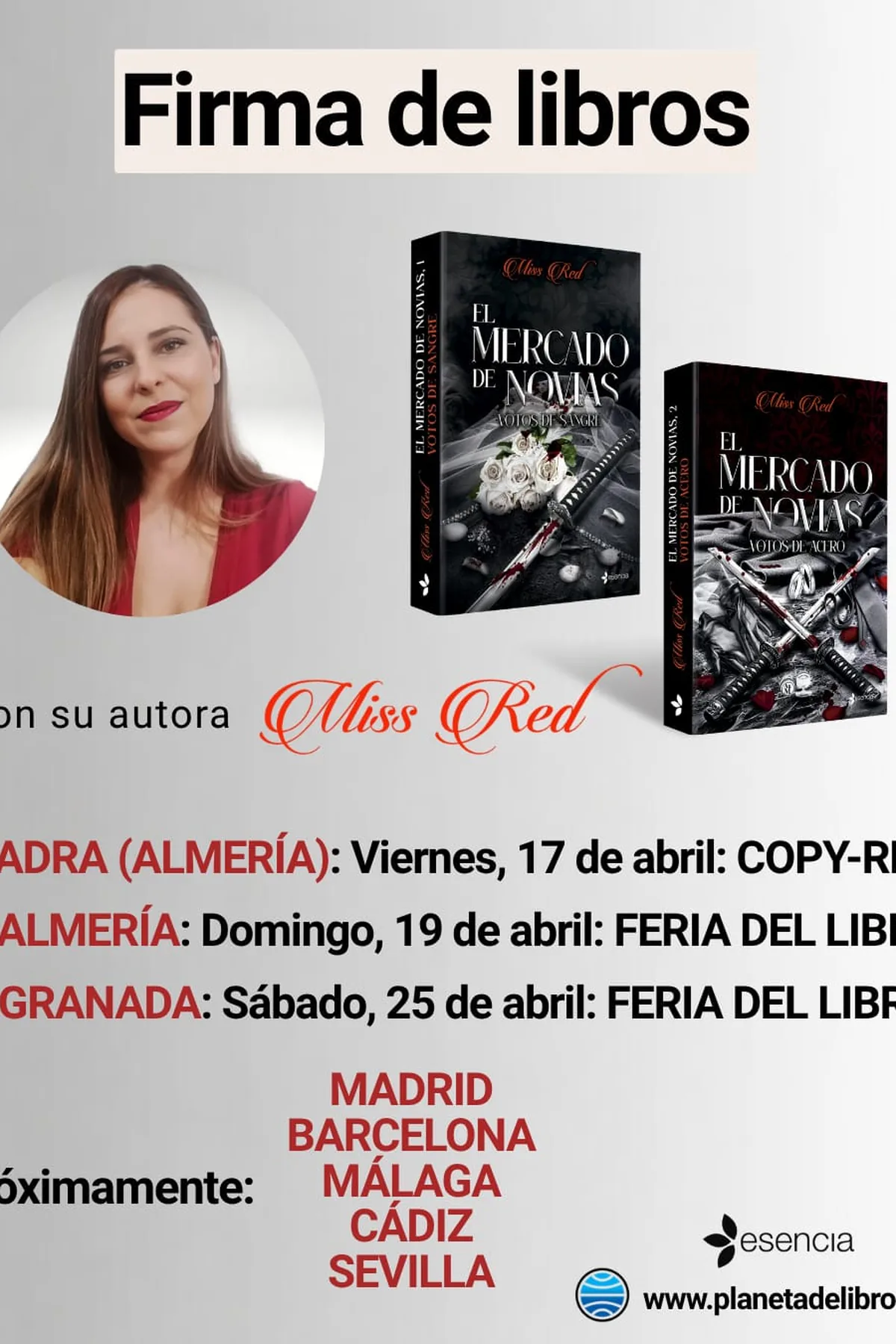 Firma de libros con su autora Miss Red en Feria del Libro (Almería) el 19 de Abril de 2026.