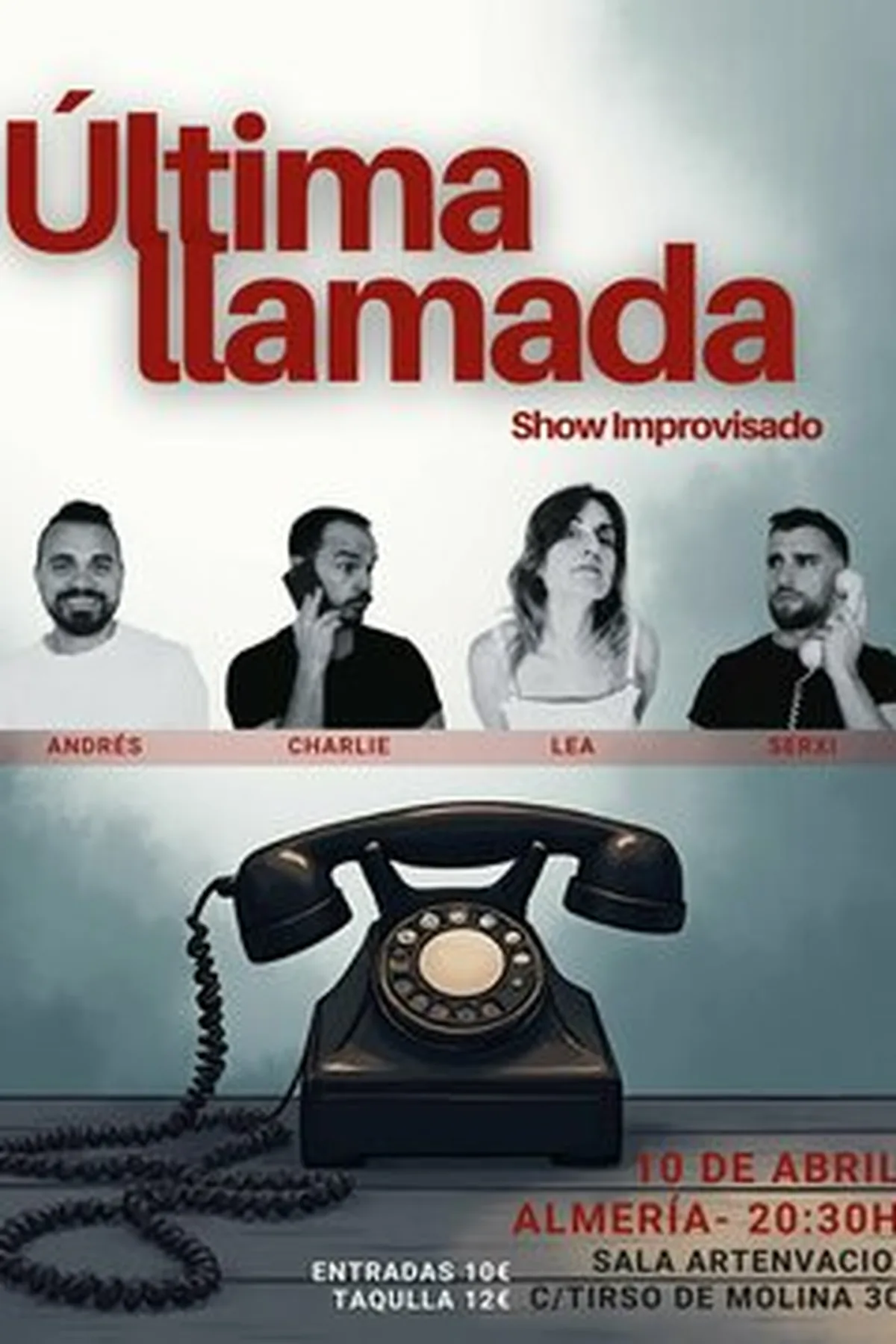 IMPRO COMEDIA ARTENVACIO - ÚLTIMA LLAMADAUn espectáculo de teatro improvisado que explora las emociones, tensiones y sorpresas que surgen en los momentos previos o posteriores a una llamada. Este show lleva a las actrices y al público a un viaje en el que las conversaciones inesperadas, los encuentros con personas del pasado o futuro y las decisiones cruciales se hacen tan relevantes como intensas.Es una experiencia teatral fresca y emocionante que invita al espectador a reflexionar sobre el mundo que nos rodea, todo mientras se divierte y se enfrenta a situaciones absurdas, familiares o incluso dramáticas.Apertura de puertas a las: 20:00 hEspectáculo a las: 20:30 hEntradas en Entradium: 10€Entradas en puerta: 12€
