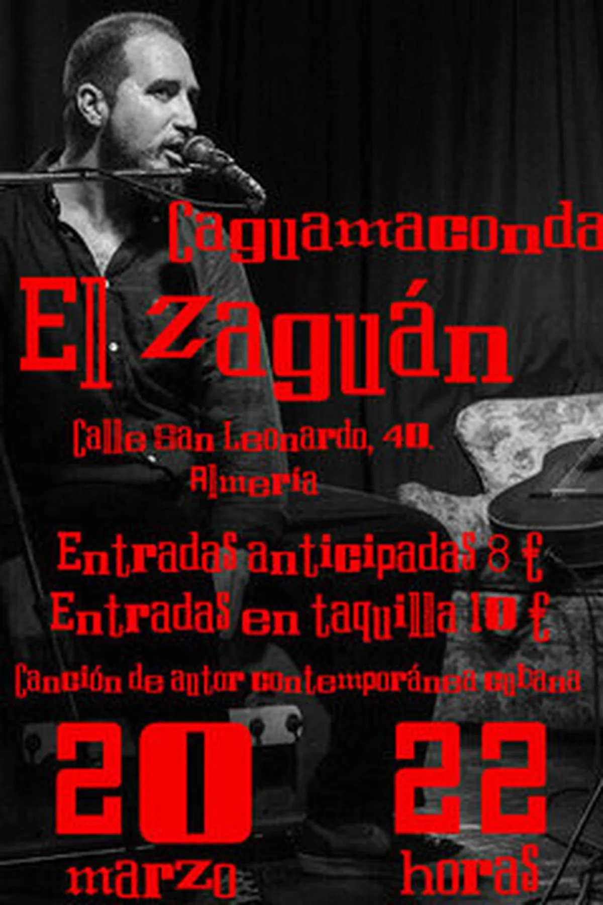 Canción de autor contempóranea, una nueva forma de asumir y representar la canción en Cuba. Podrás disfrutar de una mirada musical cubana diferente donde se mezclan teatro, poesía y música. OSCAR SÁNCHEZ (1986, Cuba). Figura destacada en el panorama de la canción de autor contemporánea cubana. Ejecuta la guitarra, el tres y la marímbula, e incursiona en diversos géneros de la música cubana (son, bolero, changüí, nengón), no solo en sus formas puras, sino también a través de su hibridación. Su más reciente disco, Acqua di Oscaretto (2023) (https://lc.cx/f58fTv), producido de forma independiente y con el apoyo de Silvio Rodríguez, fue nominado al premio Cubadisco y ha recibido destacadas críticas en medios de prensa especializados. Fue seleccionado por la revista Magazine AMPM como uno de los diez mejores fonogramas cubanos de 2023. Ha compuesto música para obras de teatro e integró la agrupación Habana Roots Ensemble, bajo la dirección de Andrés Levín. En septiembre de 2019 fue invitado por Silvio Rodríguez a participar en el concierto 104 de la Gira Interminable por los Barrios. De julio a noviembre de 2022, tras recibir una beca de movilidad de Ibermúsicas, realizó su primera gira internacional en México. Allí recibió la residencia artística Zyanya, que finalizó con «Caguamacondeo pictórico», su primera exposición personal. Tiene, además, tres fonogramas producidos de manera independiente –Unknown artist (2015), Ojos que te vieron Go, Never te verán Come Back (2017), en colaboración con Marbis Manzanet, y Crowdfunding criollo (2020). Realizadores audiovisuales de importante trayectoria se han inspirado en su creación (http://lc.cx/PYj4Mv).
