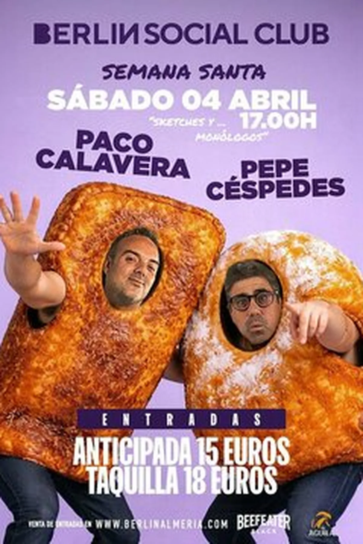 PACO CALAVERA Y PEPE CESPEDES ATERRIZAN DE NUEVO, ESTA VEZ EL SÁBADO SANTO, PARA HACERNOS REÍR CON SUS DIVERTIDOS SKETCHES DE HUMOR CHORRASABADO 4 ABRILAPERTURA PUERTAS 17:00ENTRADAS ANTICIPADAS 15€ENTRADAS TAQUILLA 18€Hay sillas disponibles que se ocuparán por orden de llegada