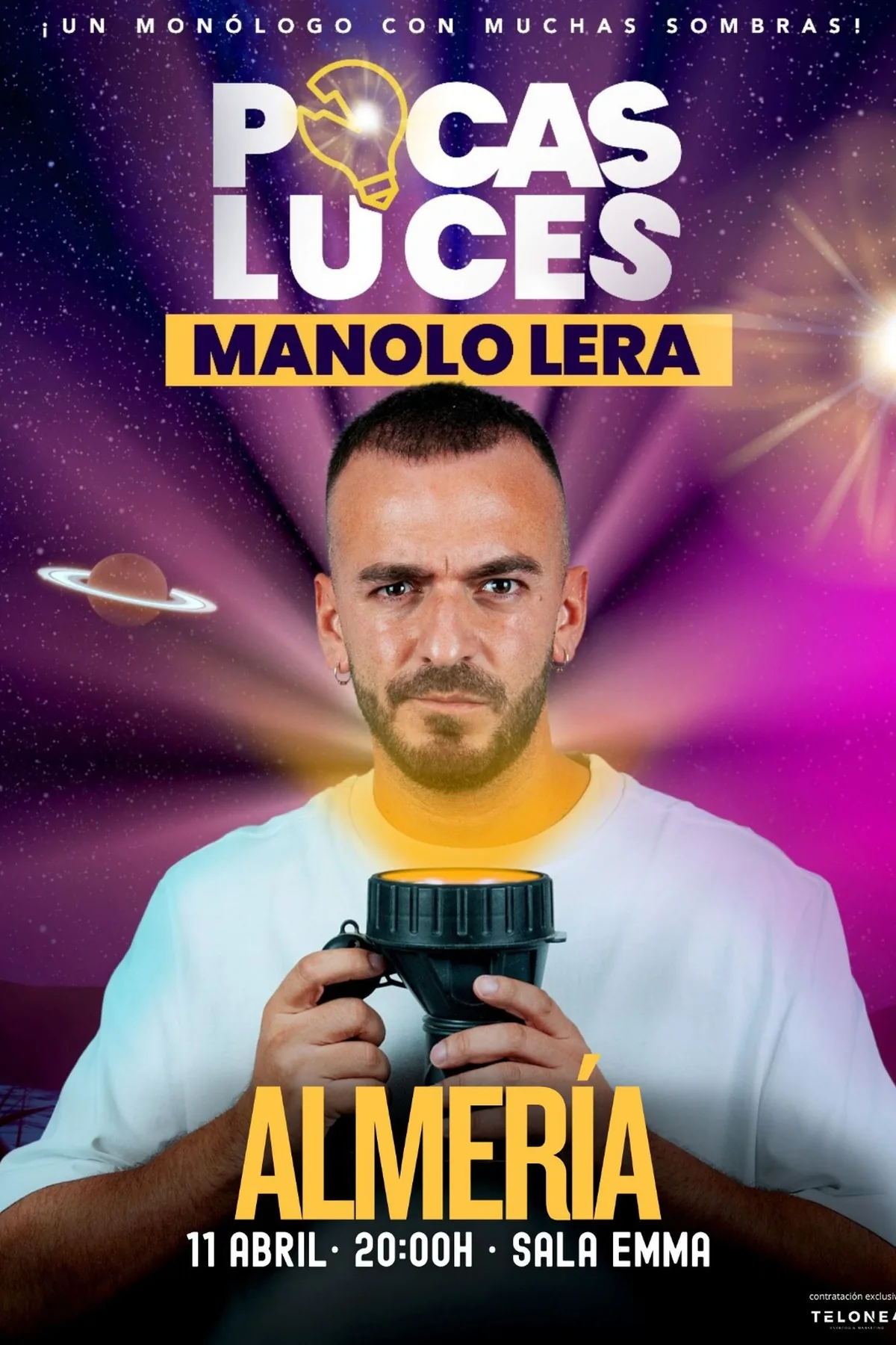 Prepárate para una noche de risas con el monólogo ‘Pocas Luces’ de Manolo Lera. El humorista llega a Almería para presentarse en la Sala EMMA de la Escuela Municipal de Música y Artes el próximo 11 de abril de 2026 a las 20:00 h. Un espectáculo donde el ingenio y la ironía se apoderan del escenario. ¡No te lo pierdas! Entrada: 12,00 €.