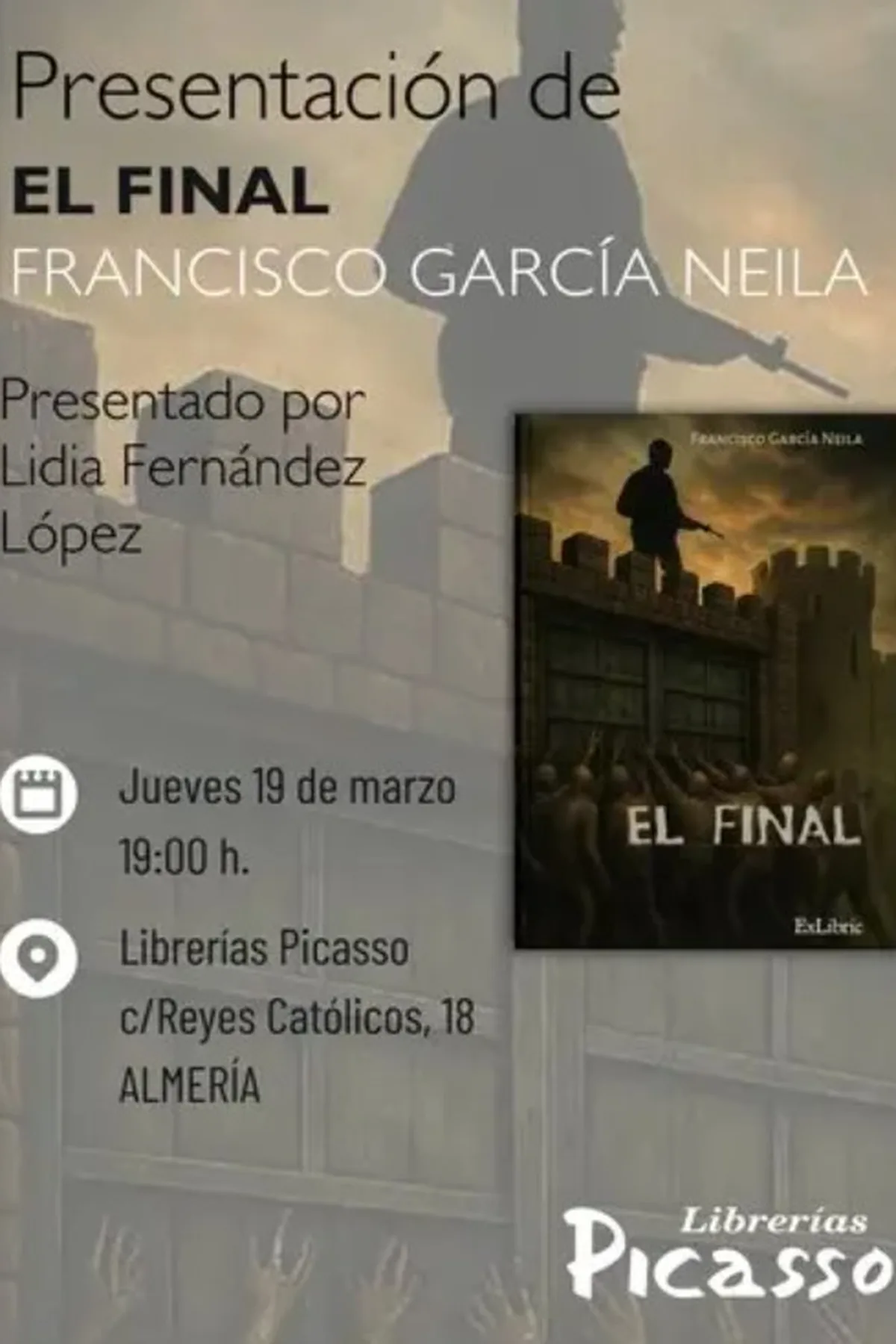 Librerías Picasso se complace en invitarles a la presentación del libro “EL FINAL”, de Francisco García Neila, presentado por Lidia Fernández López. La cita será en nuestra librería de Almería, calle Reyes Católicos 18, el próximo jueves 19 de marzo a las 19:00 horas.