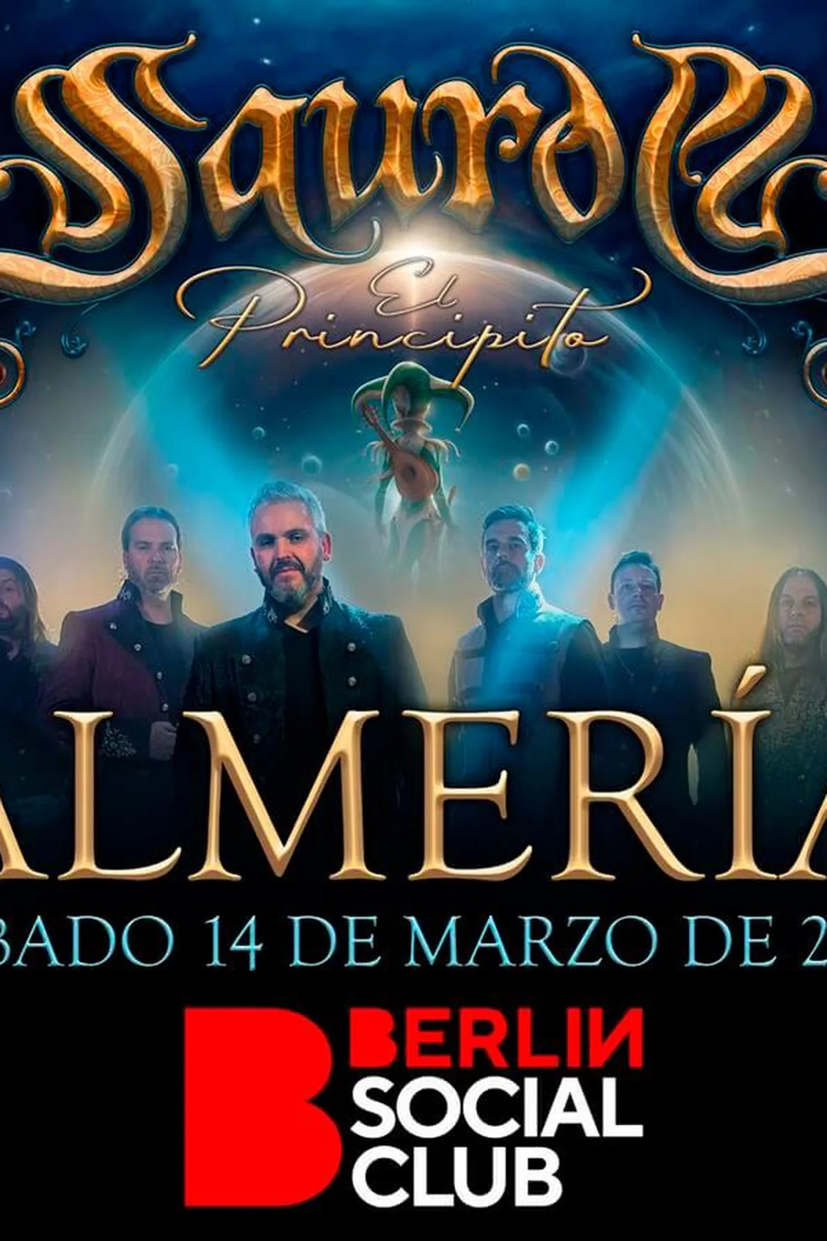 La banda de folk metal SAUROM presenta su espectáculo ‘El Principito’ en Almería el sábado 14 de marzo de 2026 en el Berlin Social Club. Un evento cargado de música, emoción y fantasía. El concierto comenzará a las 20:00. SAUROM se reserva el derecho de suspensión del evento por fuerza mayor. En caso de cancelación, las devoluciones de entrada se podrán tramitar durante los 15 días posteriores al anuncio.